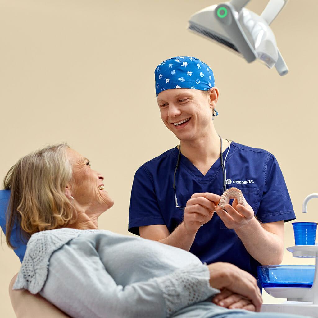 Våre dedikerte medarbeidere gjennomfører kontinuerlig kursing og videreutdannelse – både gjennom vårt eget Oris Academy og via anerkjente institusjoner nasjonalt og internasjonalt. Selv om vi naturligvis fokuserer mye på klinisk fag, har vi også mål om å være bransjeledende på alt fra pasient-kommunikasjon til arbeidsmiljø. Hos oss er det med andre ord ikke bare teknisk behandling som er i fokus, men også det mellommenneskelige. Vi vet at det å besøke tannlegen kan være en påkjenning for mange, derfor jobber vi målrettet med løsninger tilpasset behovet til hver enkelt pasient.